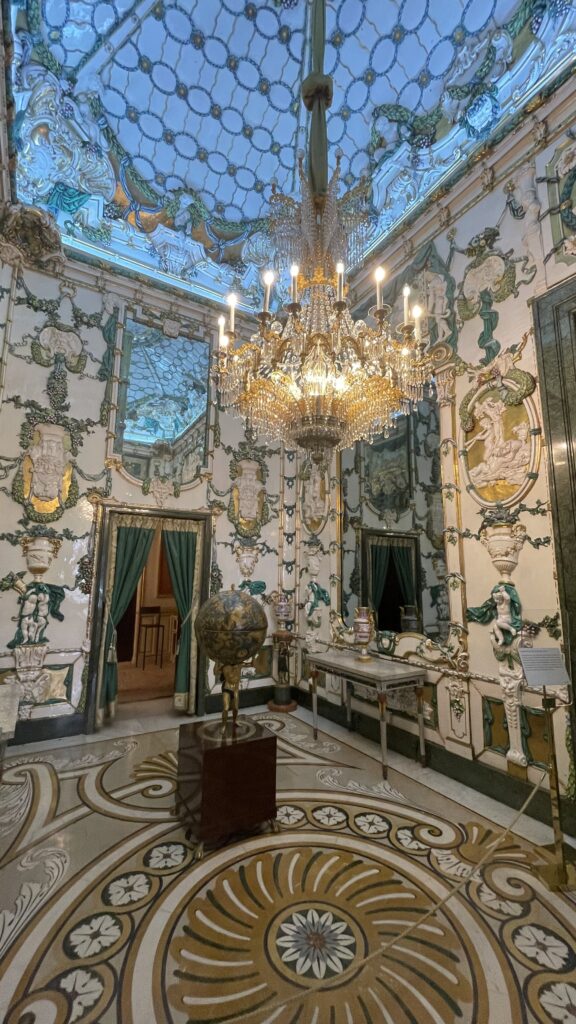 Recht tegenover het paleis. En als je dacht dat de buitenkant al indrukwekkend was: wacht tot je boven staat.