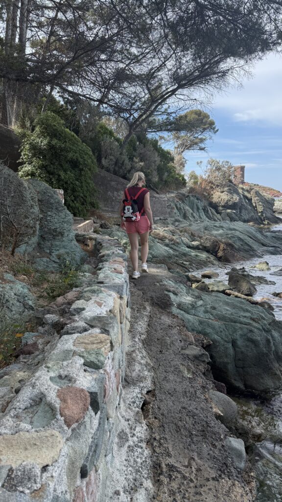 Voor de avonturiers onder ons trokken we naar het mooie Saint-Raphaël, op zo’n 25 minuten rijden van Fréjus. We parkeerden gratis op Parking du Camp Long, een rustige plek vlakbij het zandstrand én het vertrekpunt van onze wandeling.