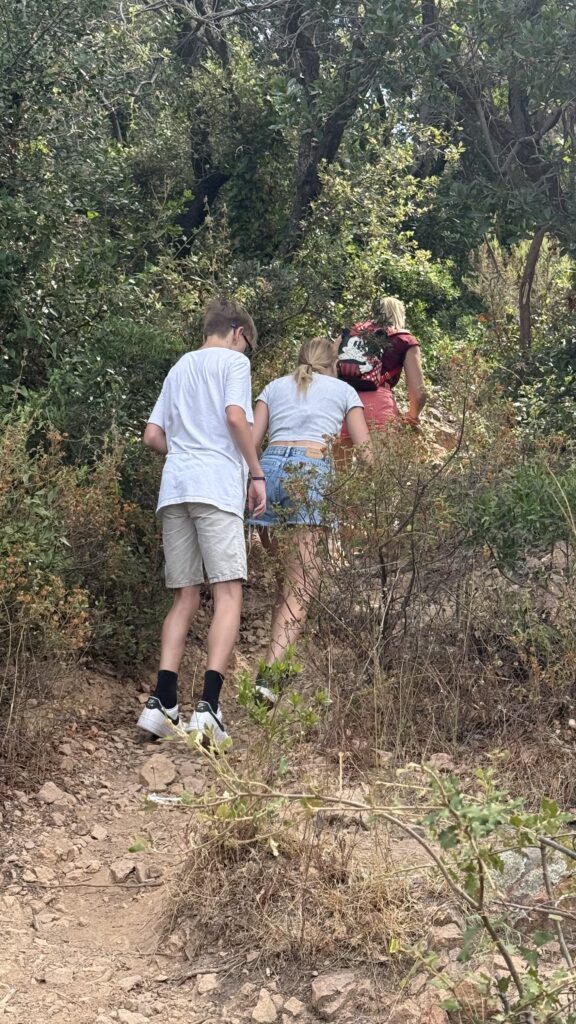 De geplande route was een luswandeling van 6km, langs de prachtige rode rotsformaties van de Esterel-kust. Maar in échte Trekpleistertje-stijl weken we na tien minuten al af van het officiële pad. Want: “Wat is dat daar voor een kronkelend paadje naar boven?” Wel, dat paadje bleek iets minder wandeling en iets meer klauterpartij. Denk: losse keizels, smalle stukjes bergwand en een plots stevig stijgend parcours dat ons recht omhoog de heuvel op stuurde. We voelden ons even Indiana Jones met een adembenemend uitzicht over de Middellandse Zee.