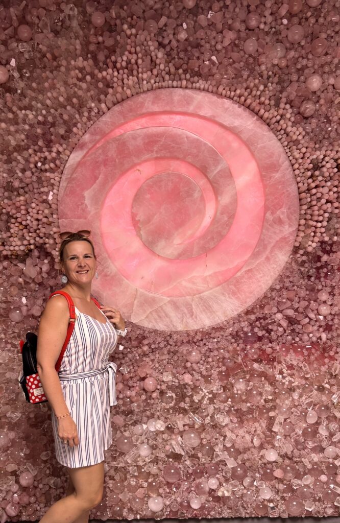 We startten in de Japanse tuin van prinses Grace (zen met een vleugje bonsai). Een kleine tuin in tegenstelling to wat je zou denken, maar fijn om eens door te wandelen. De grote exotische tuinen waren jammer genoeg gesloten omwille van renovatiewerken. Van daaruit bezochten we de mysterieuze Pink Room. Een meditatieruimte vol roze kristallen – een plek waar zelfs de influencermeute nog niet geweest lijkt te zijn. Houden zo.