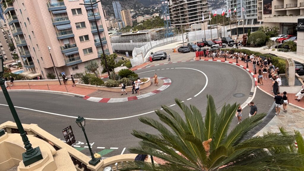 We misten een afslag, want zonder verdwalen is het geen échte Trekpleistertje-trip. Parkeren deden we in Le Petit Portier – klein, maar dicht bij de beroemde Fairmont-haarspeldbocht. Bonuspunten voor racefans, geen punten voor toegankelijkheid. Wij betaalden hier zo’n 18.50€ voor zo’n 6 uurtjes.