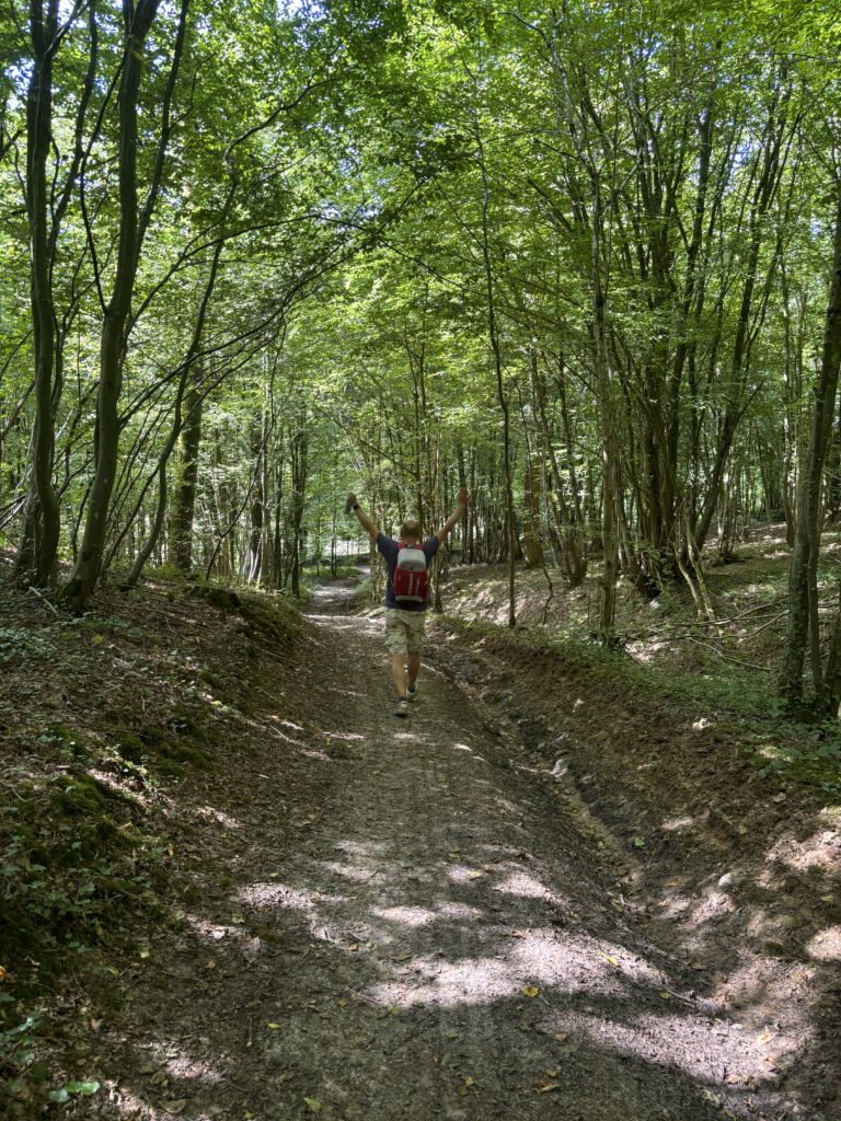 De wandeling slingert zich langs bossen en hoogtes waar je Walcourt als een miniatuurstadje aan je voeten ziet liggen. Soms zo stil dat je je eigen voetstappen hoort, soms verstoord door een tractor die vond dat dit ook zijn moment was. Maar goed, contrast is ook natuur zeker?