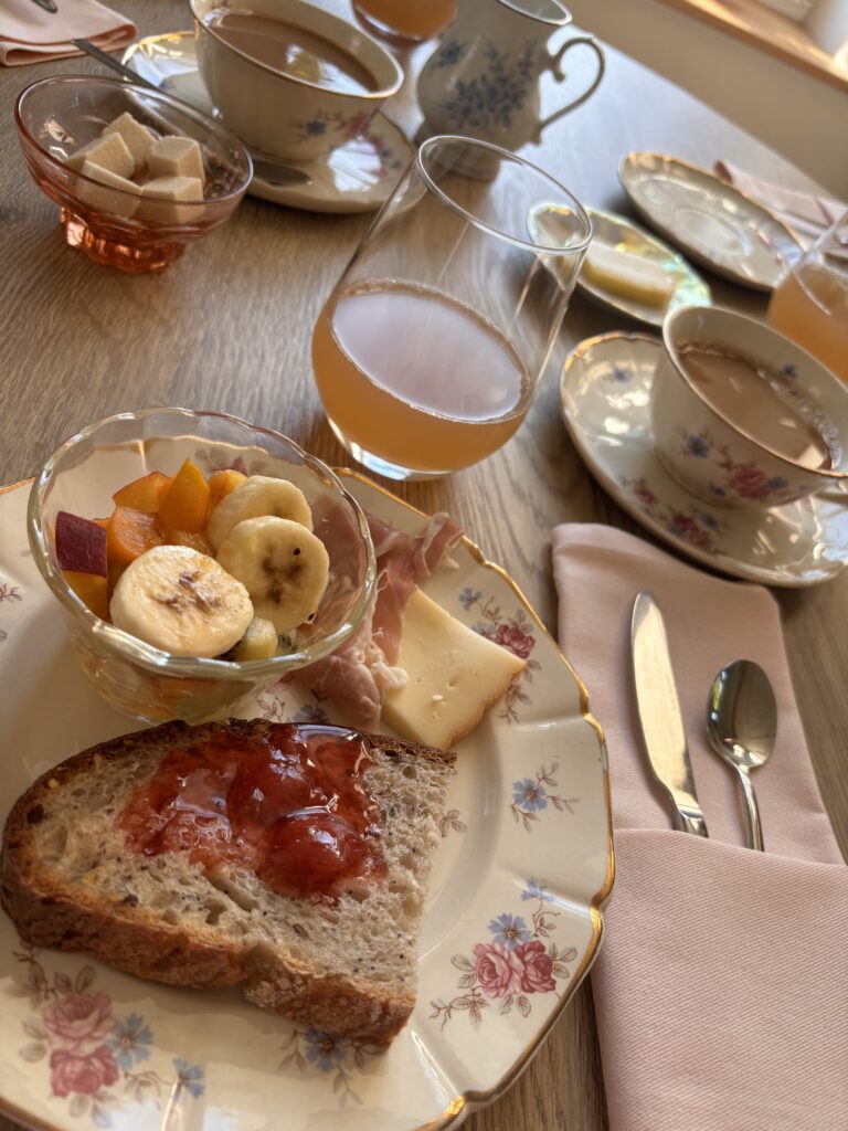 Ook het ontbijt is een reden op zich om hier te overnachten: huisgemaakte pannenkoeken, confituur, eitjes van eigen kweek – alles vers, alles liefdevol, alles wat je wil op een bord voor je eerste koffie.